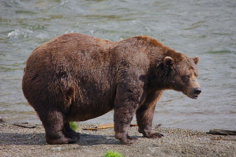 The website says he also patiently fishes in less productive areas of the river, and "when fishing, he frequently licks his lips, which is a behavioral characteristic expressed by few bears at Brooks River."