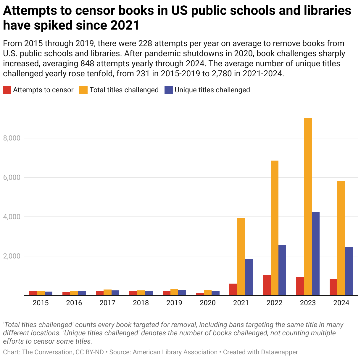 Over the past decade, a growing movement to restrict access to books in public schools and libraries has spread across the country. Every year, there are hundreds of attempts to challenge or ban books, targeting thousands of titles.