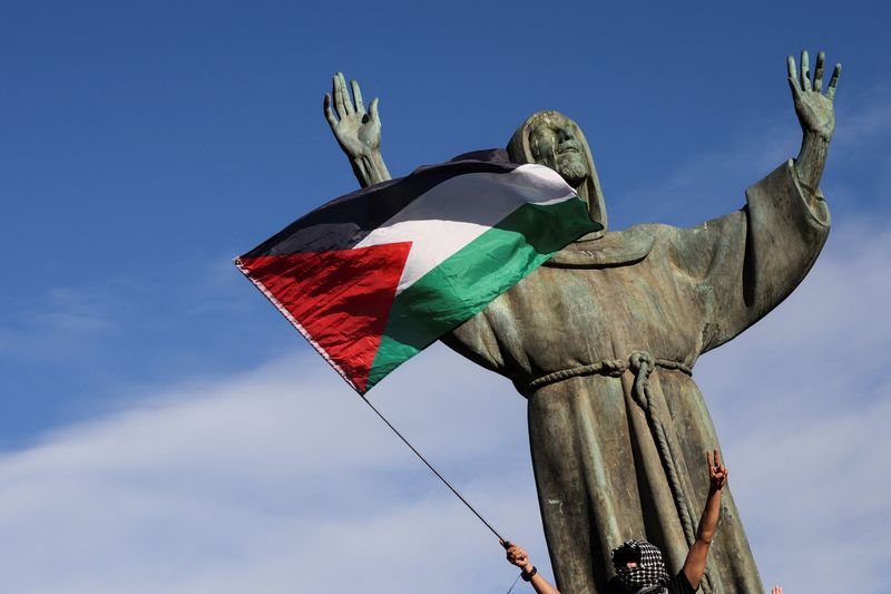 ROME (Reuters) -Large crowds assembled in central Rome on Saturday for the fourth straight day of protests in Italy since Israel intercepted an international flotilla trying to deliver aid to Gaza, and detained its activists.
