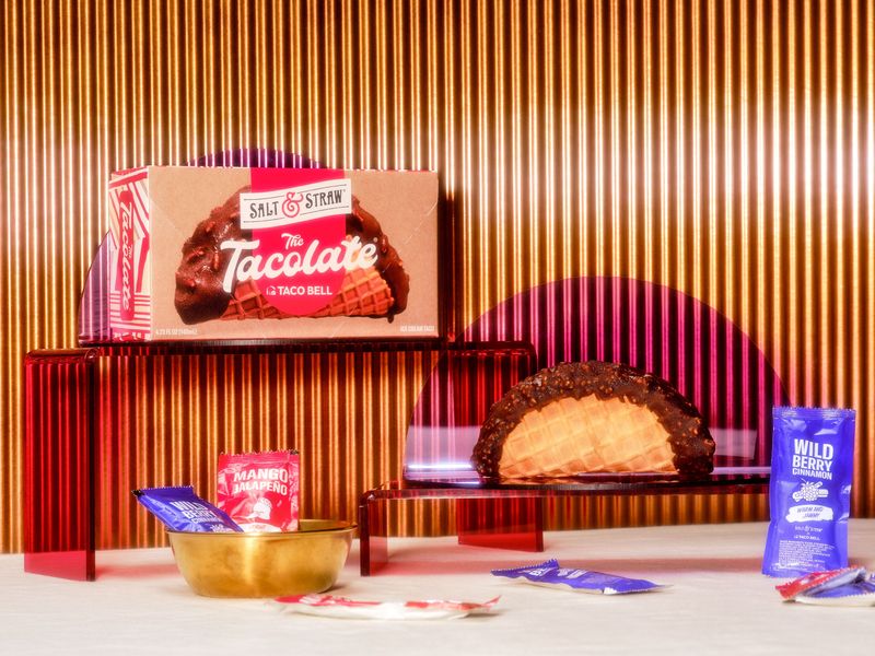And Taco Bell has teamed with ice cream company Salt & Straw to bring back the Tacolate, made with a waffle cone taco shell filled with cinnamon ancho chili ice cream, dipped in chocolate, and topped with toasted brown rice. Each comes with two Taco Bell-inspired sauce packets (Mango Jalapeno Sauce and Wildberry Cinnamon Sauce).