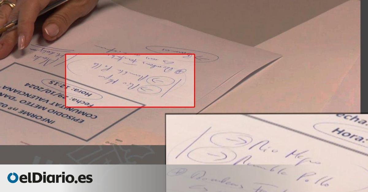 En el vídeo se puede observar al funcionario Jorge Suárez, subdirector general de Emergencias, explicando a la entonces exconsellera, Salomé Pradas, la situación de la dana. Ambos departen con el resto de equipo del Centro de Coordinación de Emergencias, también con la presencia del entonces secretario autonómico, Emilio Argüeso. Pradas toma notas en un bloc, en el que apunta el seguimiento de los dos cauces en el que se registra la alerta hidrológica, “el río Magro y el barranco del Pollo (sic)”.