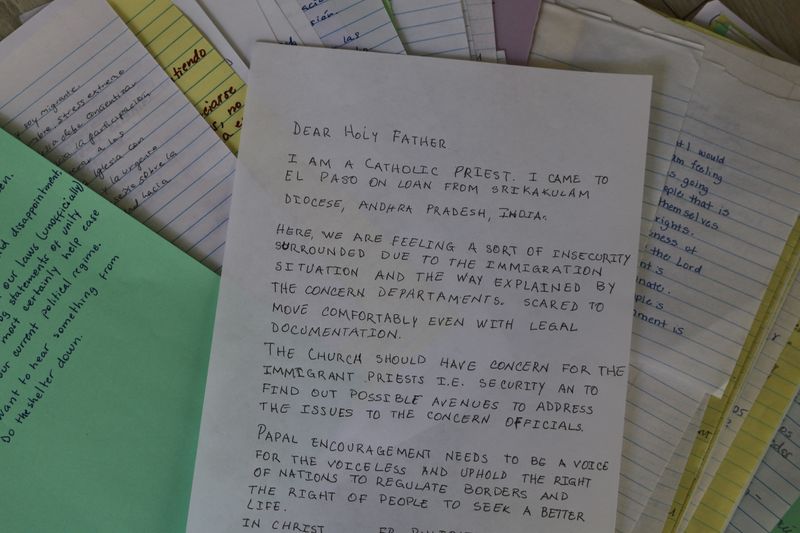 One of the letters given to the pope on Wednesday, shared with Reuters, described a family with two members who did not have legal permission to stay in the U.S. and who were afraid to leave the house for fear of deportation.