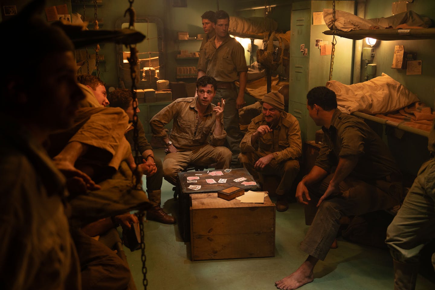 Our hero is an Aboriginal private named Leo (Mark Coles Smith). Among the soldiers are Will (Joel Nankervis), Des (Sam Delich) and Teddy (Lee Tiger Halley). As Japanese fighter planes strafe from above, the soldiers must defend themselves against a giant great white shark circling below.