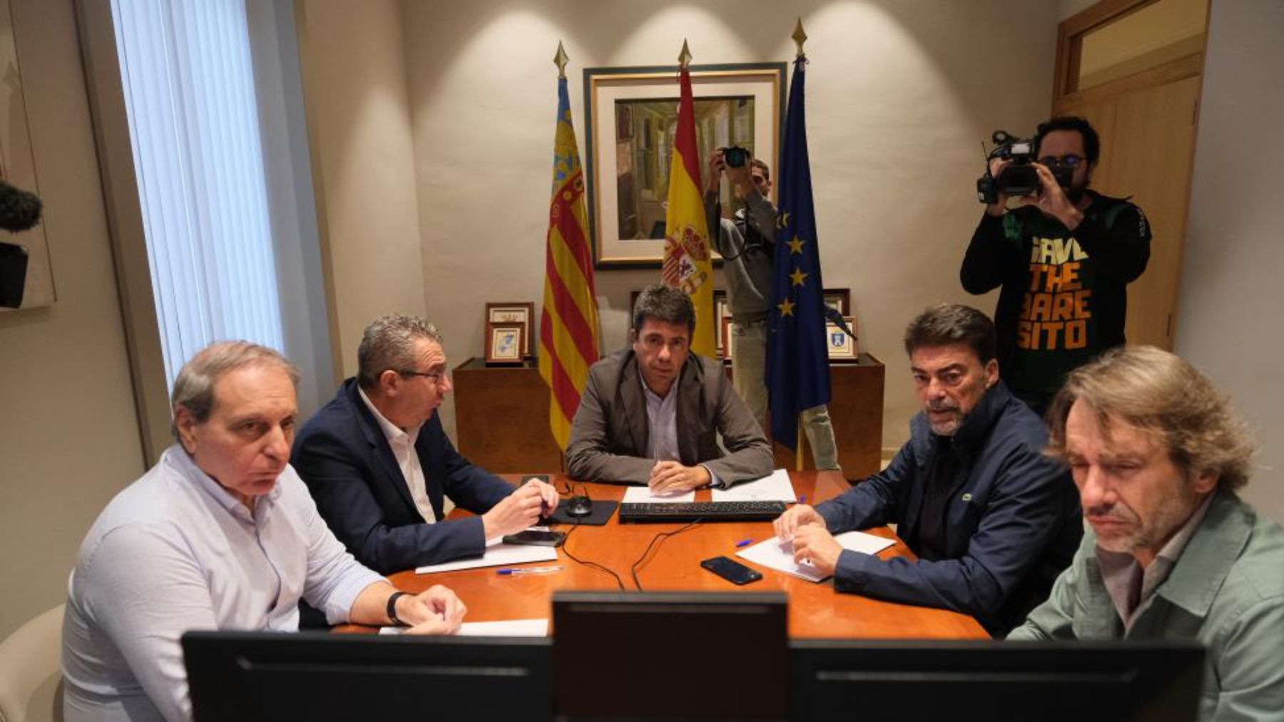 Presencialmente, junto a Carlos Mazón , han participado en esa misma reunión el presidente de la Diputación de Alicante, Toni Pérez, que también se desplaza a Orihuela en estos momentos junto al presidente de la Generalitat Valenciana, el alcalde de Alicante, Luis Barcala, y el director general de Coordinación de los Servicios de Prevención, Extinción de Incendios y Salvamento, Alberto Martín.