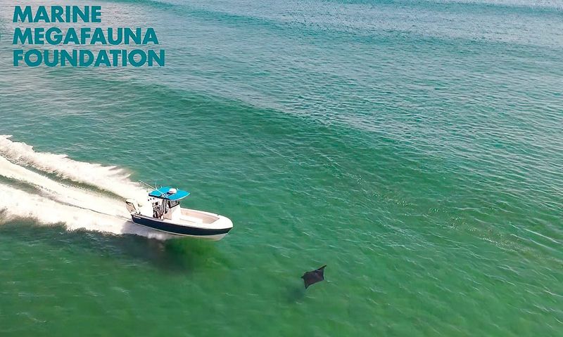 “I was filming a manta swimming in the nearshore swell when a boat exiting the inlet hit this manta,” Jessica Pate, lead scientist for the Florida Manta Project, stated via Instagram. “The manta immediately began swimming offshore with a deep laceration to his left side. This manta swam quickly east for 2.5 miles before we lost him while changing drone batteries.”