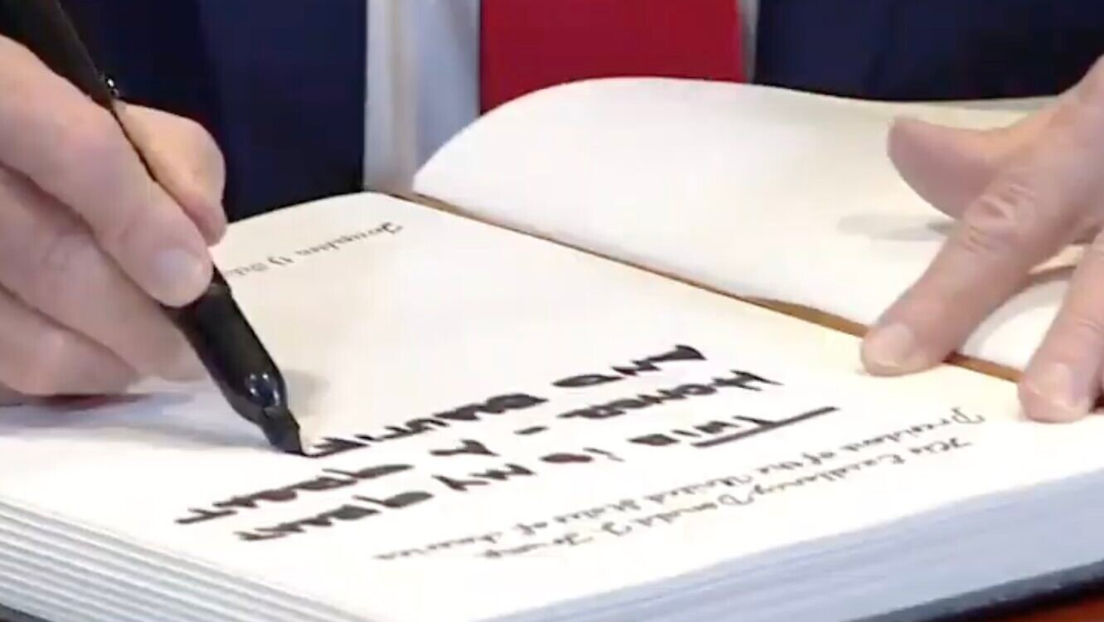 #Trump arrives at the #knesset , signs guest book before his address.'This is my great honor — A great and beautiful day, A new beginning.' pic.twitter.com/UqQWn0BXpi