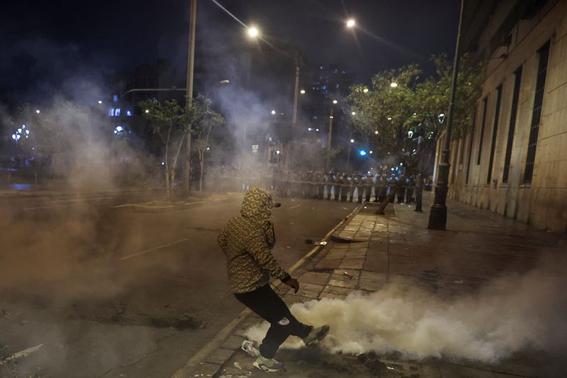 LIMA (Reuters) -At least one person was killed and dozens of police officers injured in widespread protests overnight in Peru against President Jose Jeri, who assumed power just days ago, the state ombudsman's office said on Thursday.