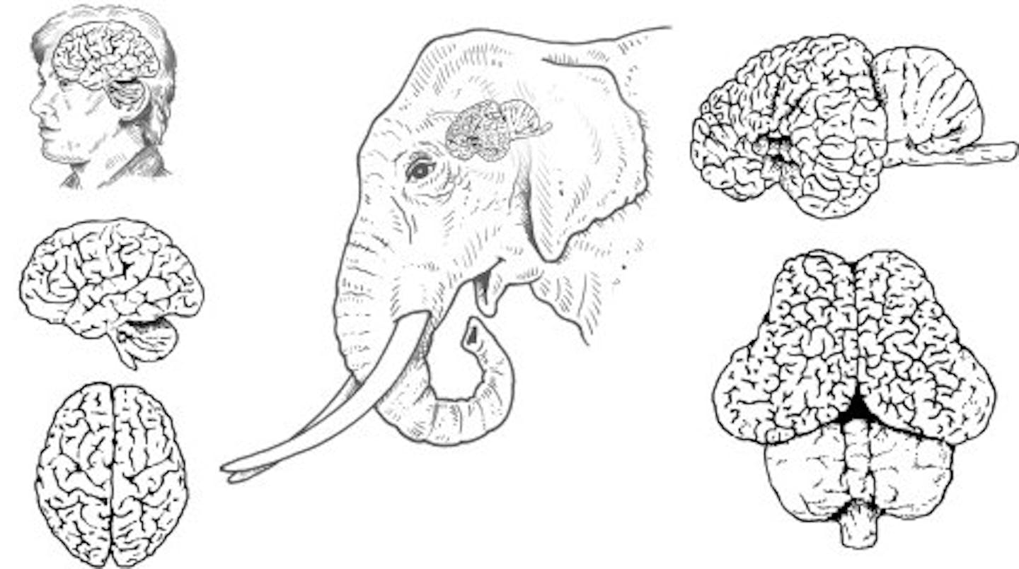 Los estudios con elefantes son especialmente interesantes, debido a que poseen el mayor encéfalo de entre los animales terrestres. Con ellos, surge la siguiente pregunta: ¿existe correlación entre el tamaño encefálico y las capacidades cognitivas?