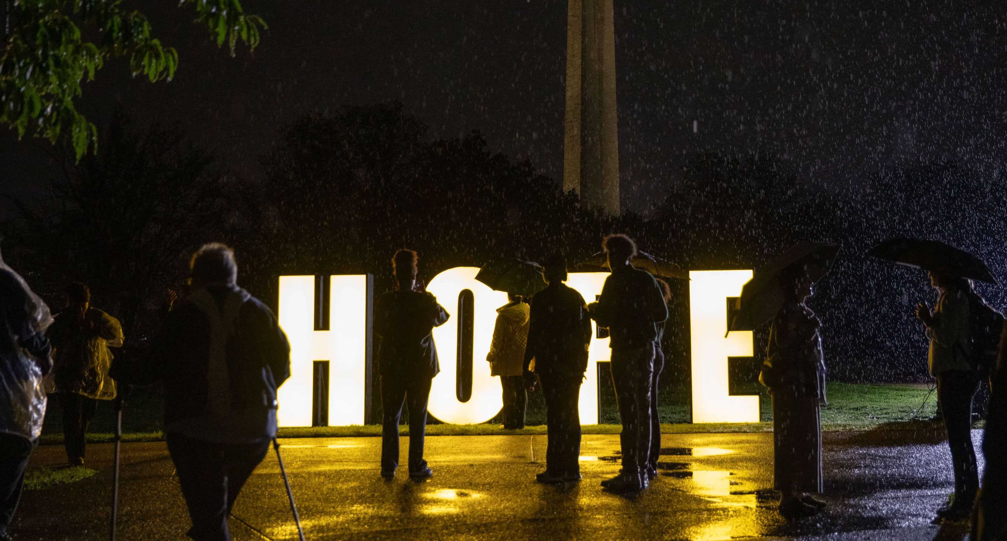 When evening came, the volunteers met on the National Mall for a candlelight vigil. It was raining. Bagpipes played.