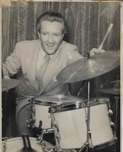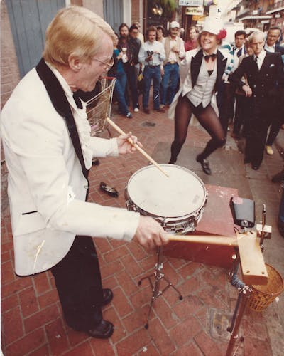 As she wanders through the apartment, she lingers over the photographs lining the walls. Portraits of Gerry in the big bands and quartets he played with during the 1940s and 1950s hang next to images of him performing in public with her, knocking out the rhythms on a snare drum while she tap dances in her tailcoats.