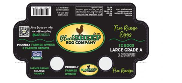- Black Sheep Egg Company 12-count cartons of free-range large grade A brown eggs with best by dates 8/22/2025-10/31/2025 and UPC 860010568507.