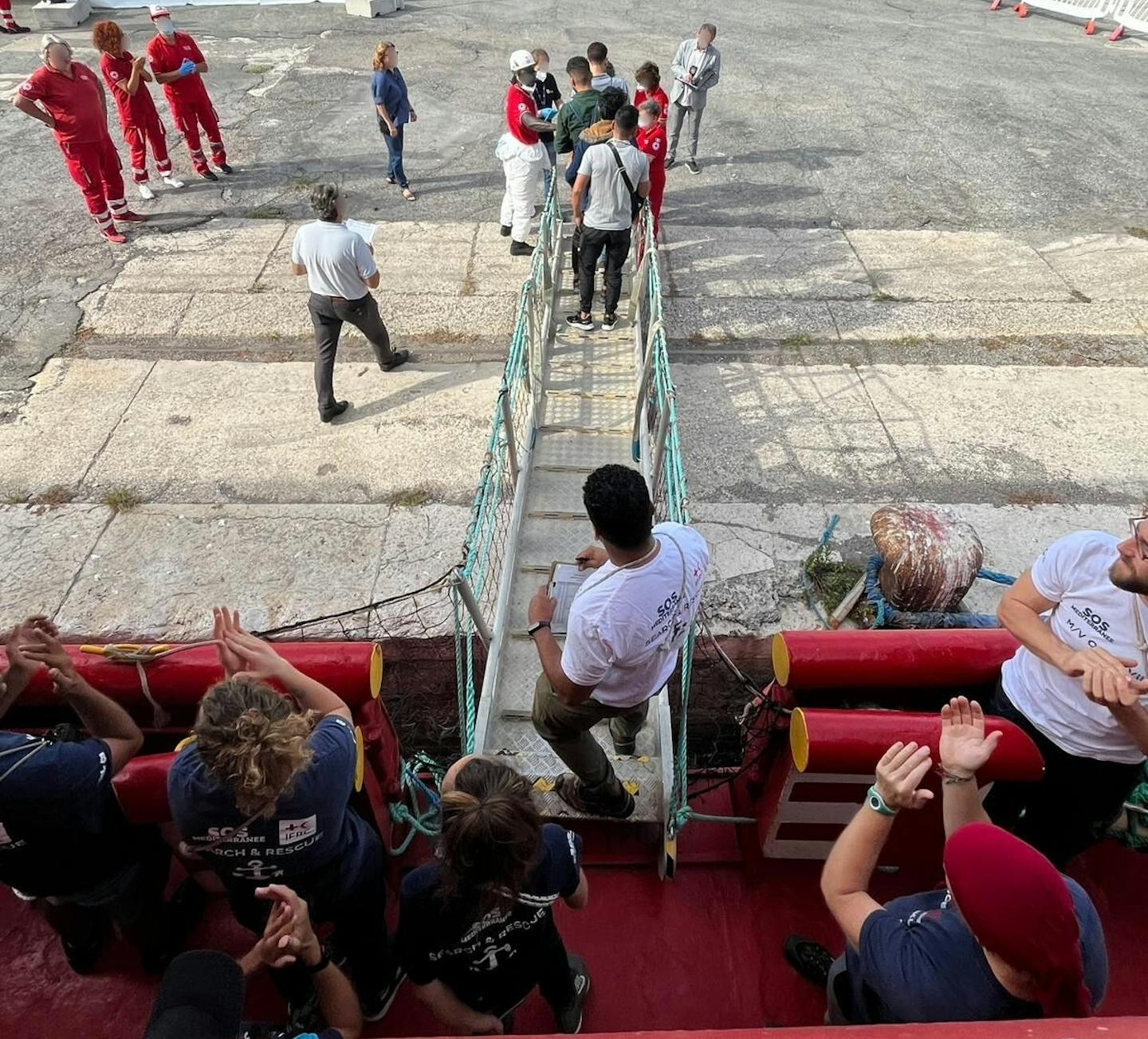At the level of international search-and-rescue (SAR) conventions, the rescue officially ends once people are disembarked in a “place of safety”. For the SOS Méditerranée crews, it is customary to consider that the work stops there – even if human relationships sometimes continue afterwards.