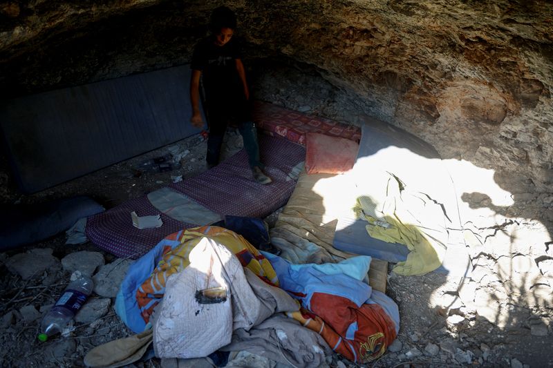 People inspect next to a cave at the site where Israeli forces killed three Palestinians, near Jenin, in the Israeli occupied West Bank October 28, 2025. REUTERS/Raneen Sawafta