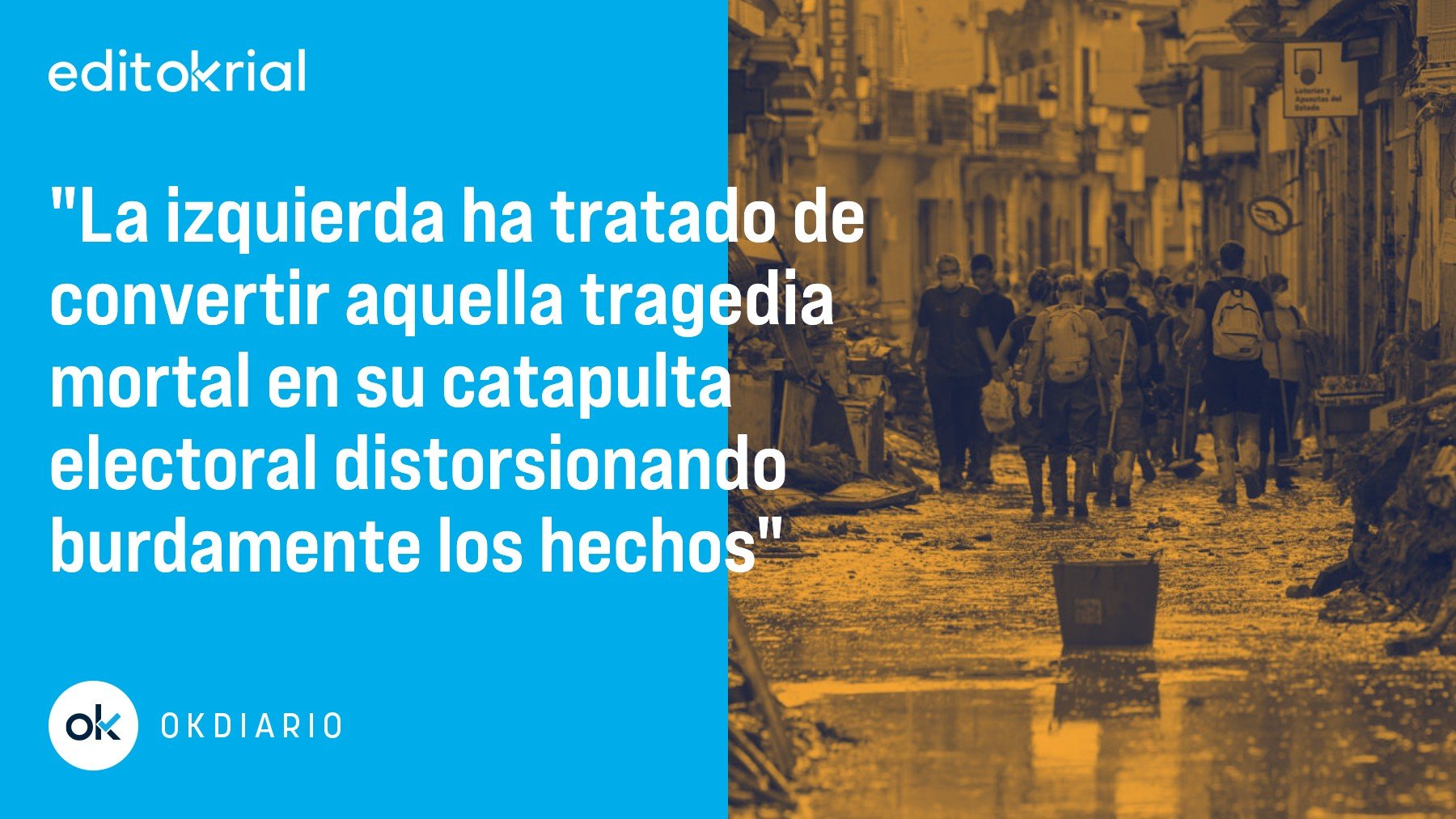 Se cumple un año de la tragedia que asoló Valencia llevándose por delante la vida de más de dos centenares de personas , un año de esa DANA mortal que quedará para siempre marcada en la memoria de España. La riada ha dado paso al fango político para anegar la verdad de lo ocurrido aquel 29 de octubre , porque siendo evidente que hubo errores de gestión política mortales de necesidad, imputables a la Administración autonómica y central, todo lo vivido estos últimos doce meses responde a los intentos de la izquierda de rentabilizar políticamente la tragedia, convirtiendo a Carlos Mazón, presidente de la Generalitat Valenciana, en una suerte de desalmado sin escrúpulos causante de las muertes.