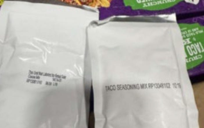 According to Teasdale Foods, customers complained that the taco dinner kits contained cocoa mix packets instead of taco seasoning packets. The cocoa mix packets contain milk, but the packaging did not list milk as an ingredient, the company said.
