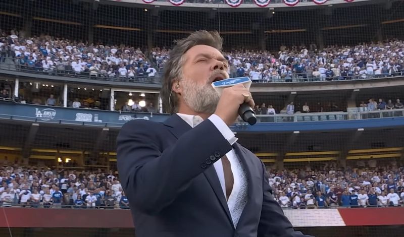Canadian-American singer-songwriter Rufus Wainwright took the field at Dodger Stadium on Wednesday to perform the Canadian national anthem, O Canada, ahead of Game 5 of the World Series.