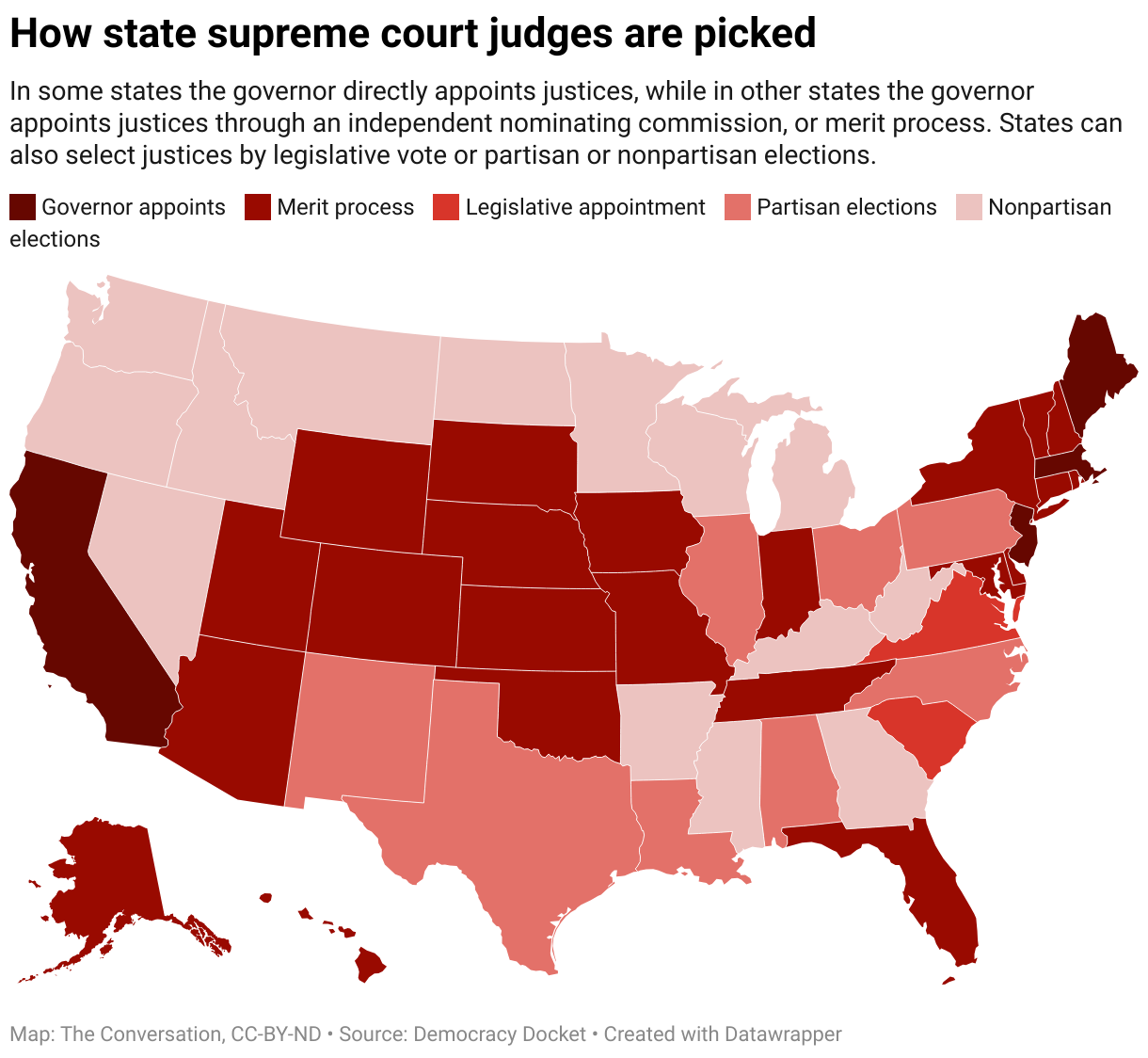 State supreme courts have always made big decisions, but the nationalization of American politics – where national partisan politics drive voter behavior in local elections – has elevated the controversy over state supreme court decisions on issues such as reproductive rights, trans rights, COVID-19 restrictions, environmental protection and more.