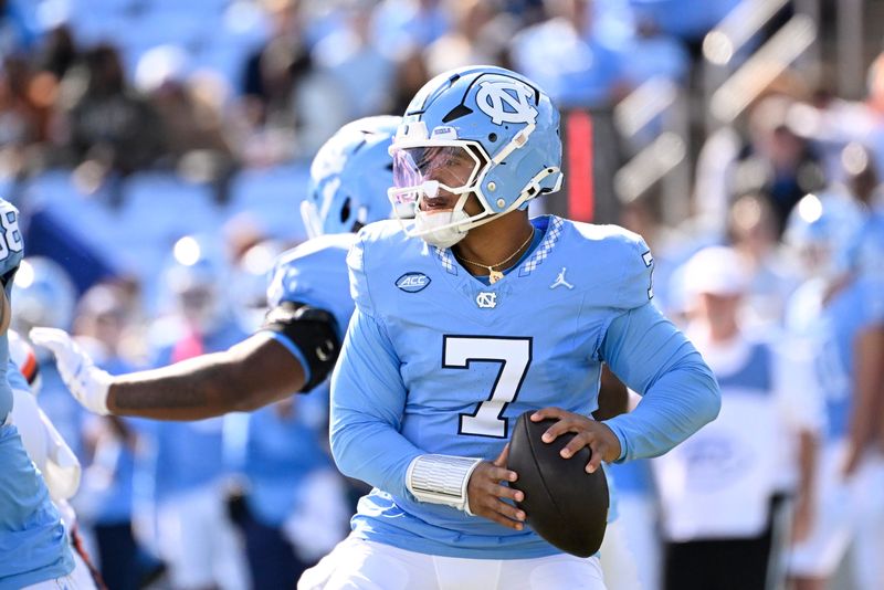 North Carolina’s struggles continued lSaturday, losing 17-16 in overtime to the No. 15 Virginia Cavaliers for their fourth straight loss. The Tar Heels, who remain winless in ACC play, covered as 11-point home underdogs as the Under (51.5) hit. QB Gio Lopez threw for 208 yards (1 TD, 2 INTs), adding a rushing score. Despite committing 3 turnovers, UNC nearly pulled off the upset, failing to convert a game-winning 2-point conversion in OT.