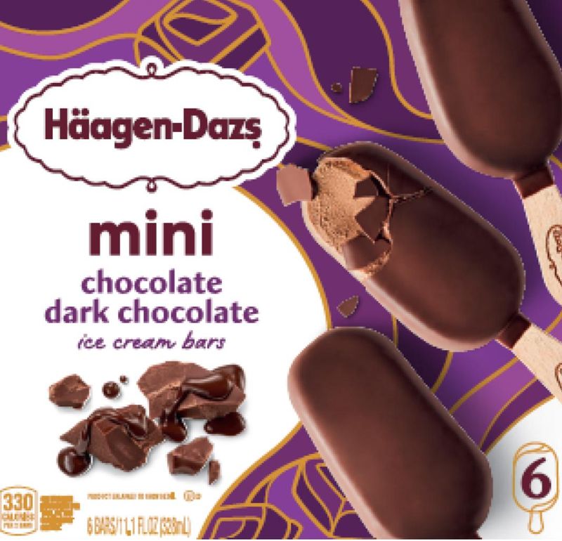 - Häagen-Dazs Chocolate Dark Chocolate Mini Bars in the 6-count package with the batch code LLA519501 and a best by date of Jan. 31, 2027.