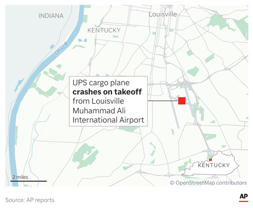 LOUISVILLE, Ky. (AP) — The grim task of finding victims from the firestorm that followed the crash of a UPS cargo plane in Louisville, Kentucky, entered a third day Thursday as investigators gather information to determine why the aircraft caught fire and lost an engine on takeoff.