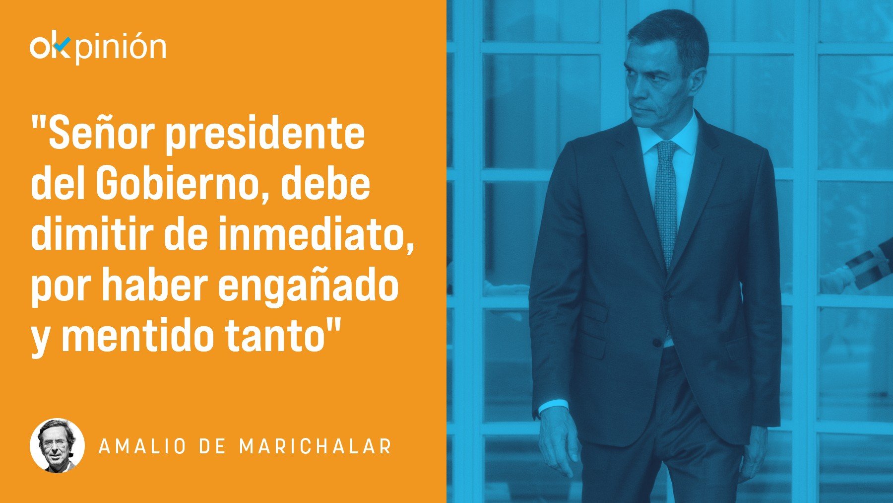 Señor presidente del Gobierno, debe dimitir de inmediato, por pedir a los españoles que pidiéramos perdón al fiscal general , por no haber pruebas en su teléfono, y hacernos creer que en su teléfono la Guardia Civil no había encontrado nada, cuando ello significaba el borrado evidente de pruebas.