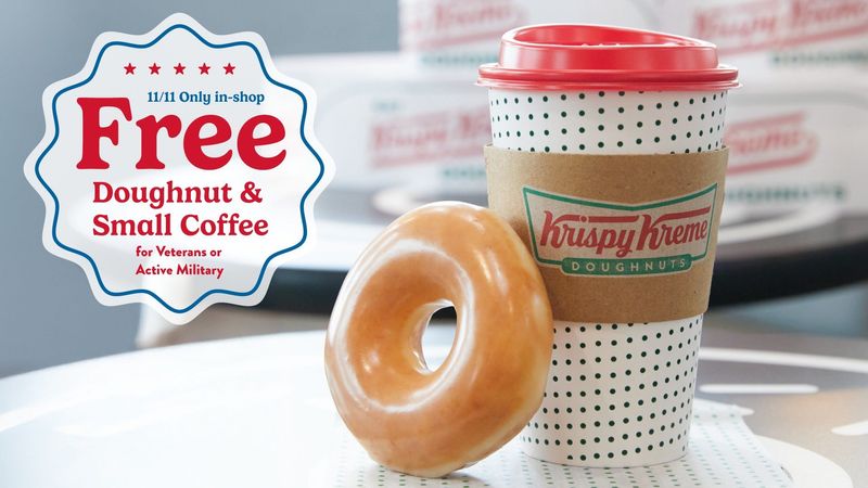 Veterans and active-duty military personnel can get a free small hot or iced coffee and a free doughnut of their choice on Veterans Day, Tuesday, Nov. 11. The deal is good in shops and at the drive-thru, no other purchase necessary (limit one per guest).