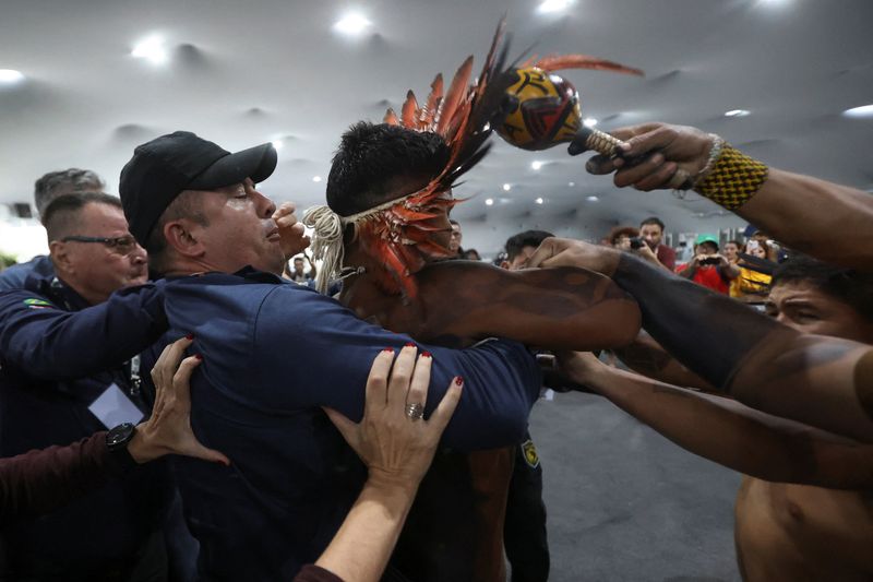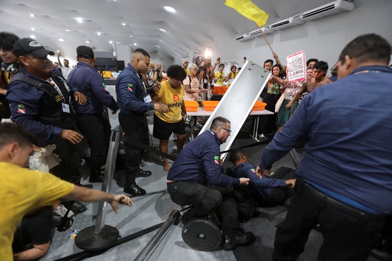 BELEM, Brazil (Reuters) -Dozens of Indigenous protesters forced their way into the COP30 climate summit venue on Tuesday and clashed with security guards at the entrance.