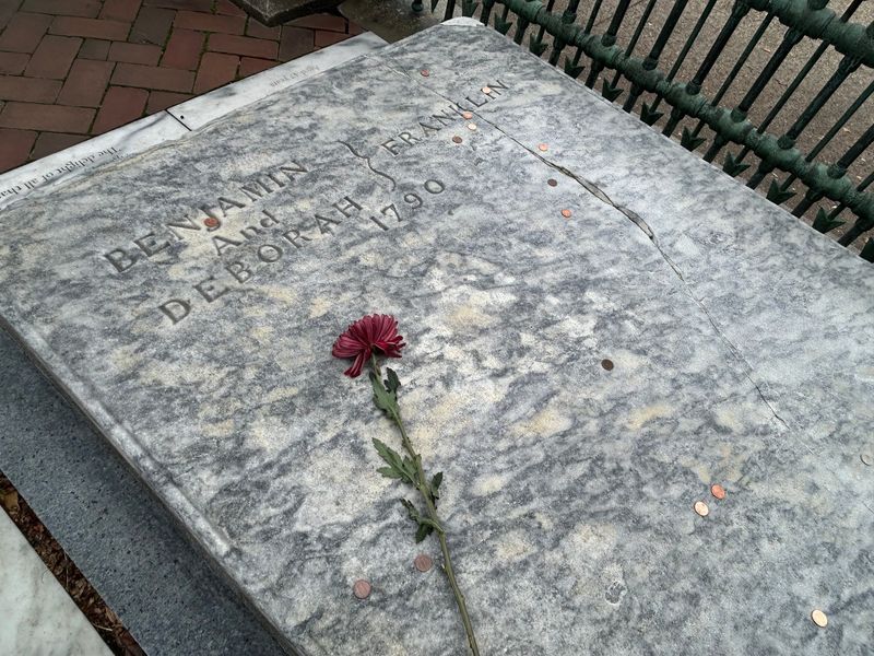 PHILADELPHIA — People visiting Benjamin Franklin's grave, just across from the United States Mint, often drop pennies on the marble marking the final resting place of the Founding Father who wrote, "A penny saved is two pence clear."