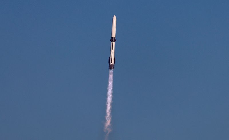 CAPE CANAVERAL, Florida (Reuters) -The giant New Glenn rocket from billionaire Jeff Bezos' space company Blue Origin launched from Florida on its debut mission for paying customers on Thursday, sending two NASA satellites toward Mars while also nailing the landing of its reusable booster for the first time.