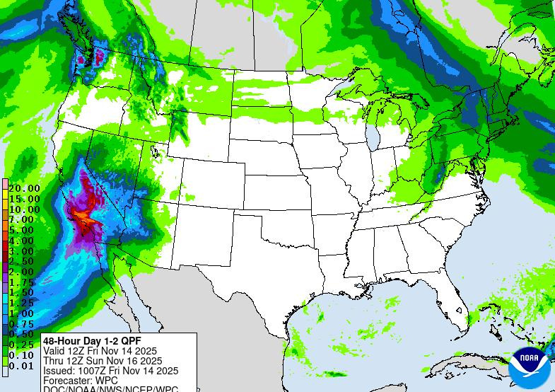 The National Weather Service said 2 to 5 inches of rain are expected through Sunday, Nov. 16, with some areas seeing as much as 6 inches of rainfall. Federal forecasters issued flood watches across much of Southern California.
