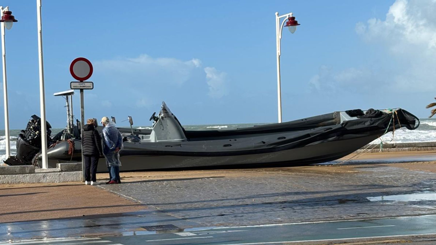La borrasca Claudia exhibe la impunidad de los traficantes de droga en el Campo de Gibraltar : este viernes luce en pleno paseo marítimo de Cádiz una narcolancha varada, en la playa de la Victoria.