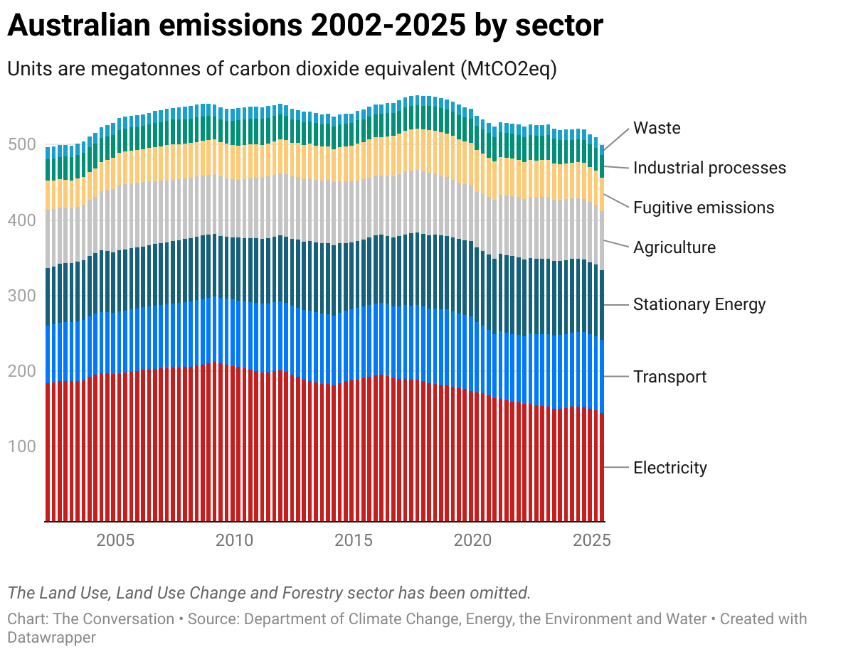 Cheap renewables and storage mean the electricity sector will likely continue to get cleaner even without government policies. But that means about 70% of Australia’s total emissions would be left without policy incentives to drive them down.