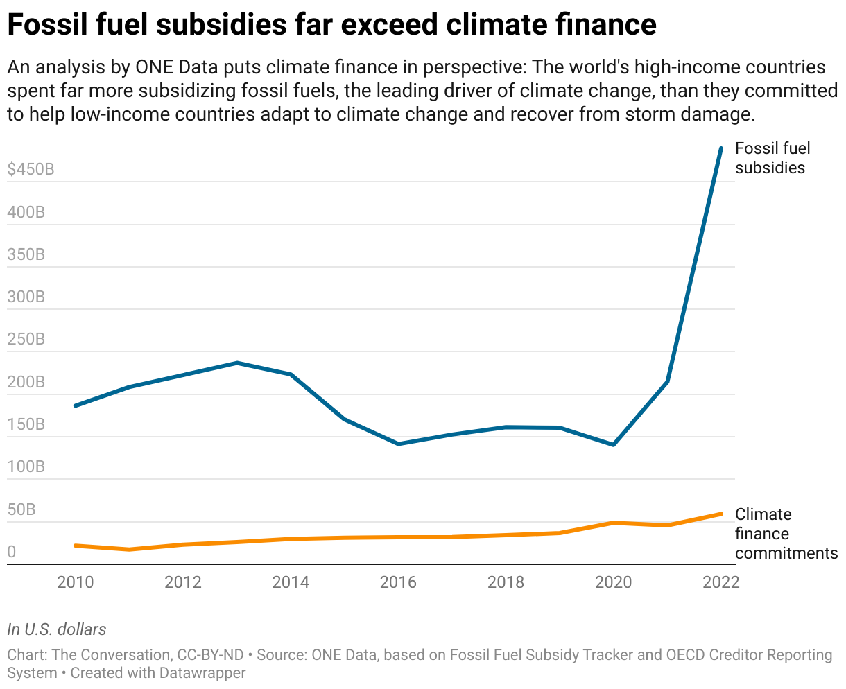 Wealthy nations first promised in 2009 to raise $100 billion a year in climate finance for developing countries by 2020. Whether they hit that target in 2022, as claimed, is up for debate.