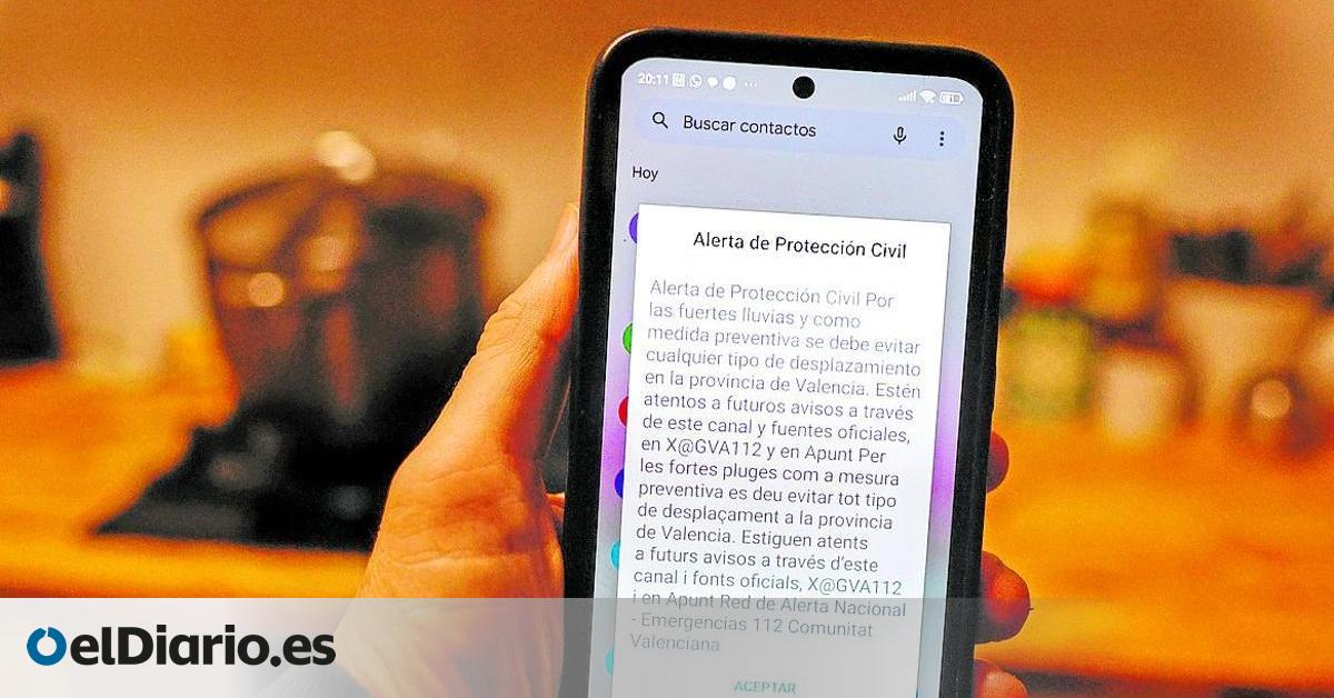 —Provincia de Valencia. Por las fuertes lluvias y como medida preventiva se debe evitar cualquier tipo de desplazamiento en la provincia de Valencia. Estén atentos a futuros avisos a través de este canal y de fuentes oficiales en Twitter GVA 112 y À Punt. Per les fortes pluges, bla, bla, bla...