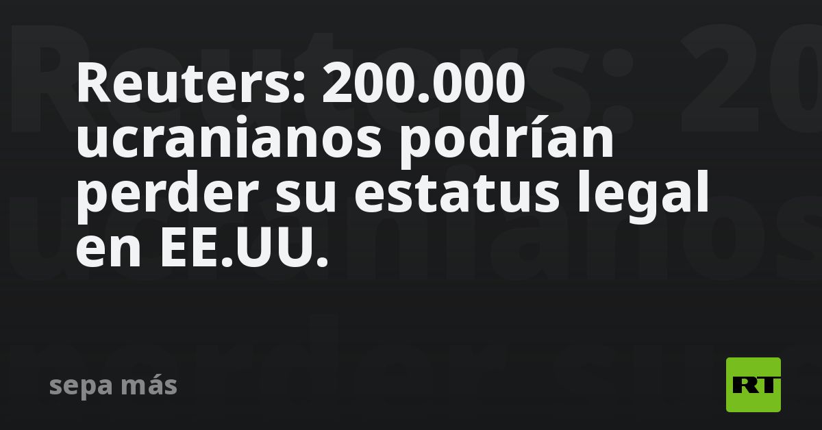 Cientos de miles de ucranianos que ingresaron a Estados Unidos desde 2022 corren el riesgo de perder su estatus legal en el país, informó el domingo Reuters, citando datos del Gobierno estadounidense.