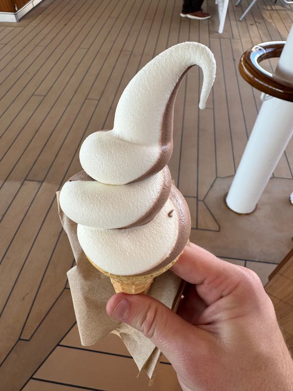 On the other side of Deck 11, I treated myself to soft serve after lunch at Sweet Minnie’s Ice Cream. The chocolate-vanilla swirl was some of the best I’ve had on land or at sea, velvety and not overly sweet.
