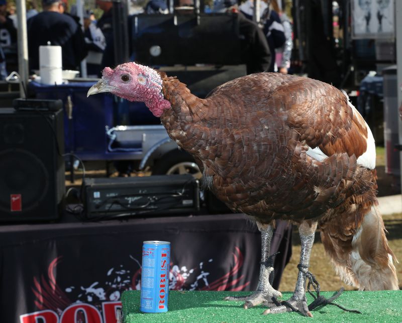 Nov 28, 2013; Arlington, TX, USA; Tailgate Tom the turkey at a party outside AT&T Stadium prior to the game with the Dallas Cowboys playing against the Oakland Raiders for a NFL football game on Thanksgiving at AT&T Stadium. Mandatory Credit: Matthew Emmons-USA TODAY Sports