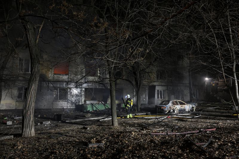 (Reuters) -Russian forces staged a mass drone attack on the southeastern Ukrainian city of Zaporizhzhia late on Tuesday, triggering fires, injuring 19 people and badly damaging buildings and vehicles, the regional governor said.