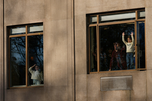 Espectadores observan desde las ventanas de sus apartamentos el desfile del Día de Acción de Gracias de Macy's que pasa por Central Park West, el jueves 27 de noviembre de 2025, en Nueva York. (Foto AP/Frank Franklin)