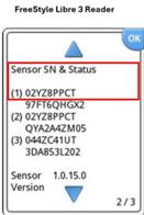 In the FreeStyle Libre 3 Reader, navigate to the "Settings Menu" and select "System Status," then "System Info." Look under the "Sensor SN & Status" section.