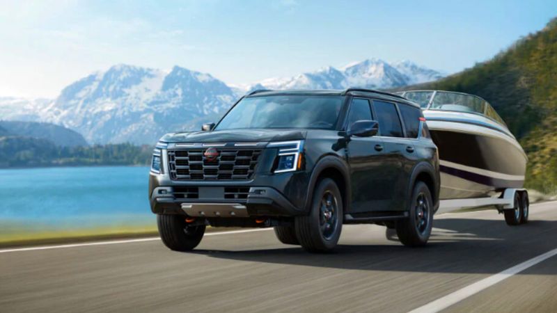 The 2026 Armada uses a mighty 3.6-liter twin-turbocharged V6 engine to produce 425 horsepower and 516 pound-feet of torque, which is fitting for its size. It earns 16 miles per gallon in the city and 20 miles per gallon on the highway (typical for its segment).
