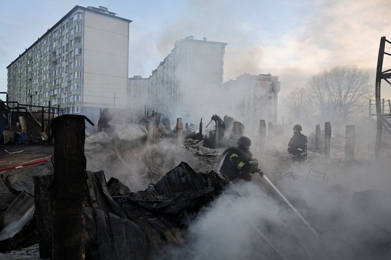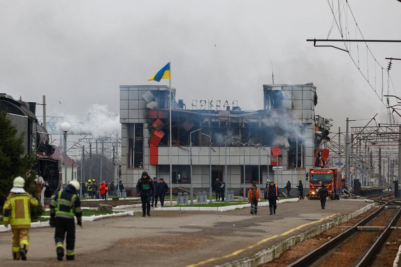 Among the sites hit overnight was a railway hub near Kyiv, where the depot and railway carriages were damaged, Ukrainian state railway company Ukrzaliznytsia said.