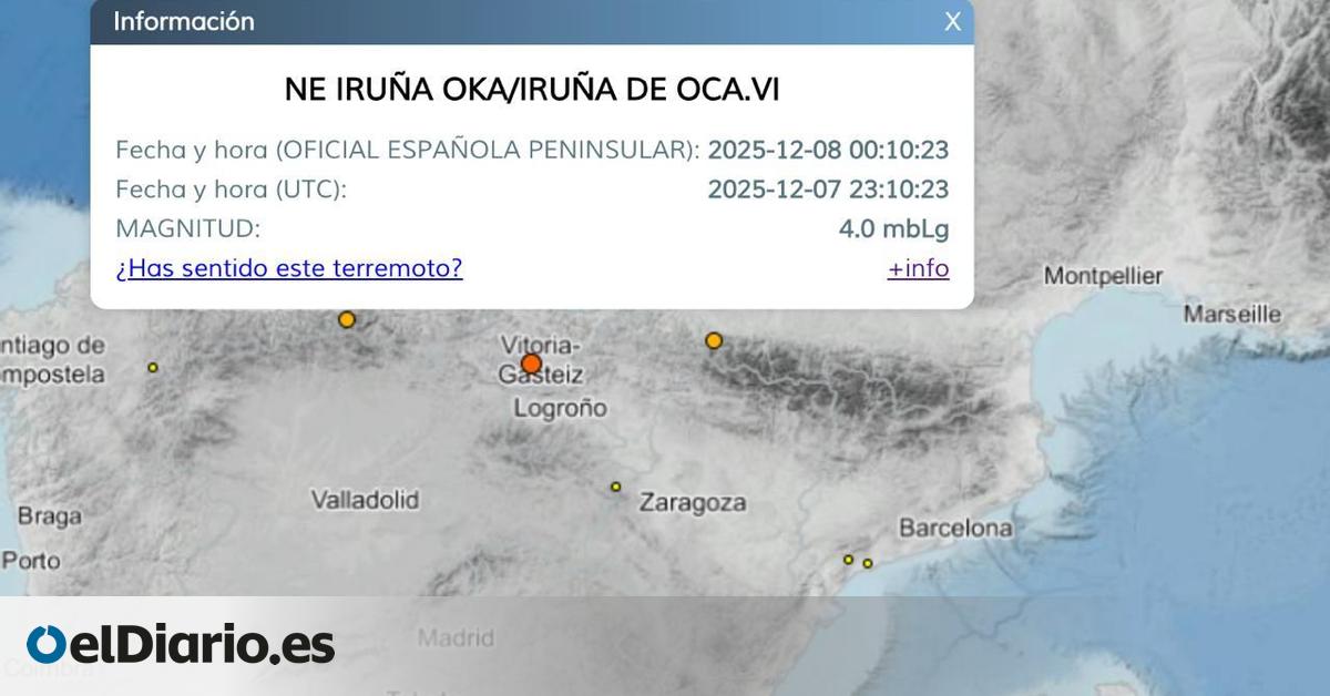 En la noche de este domingo a este lunes, según ha informado SOS Deiak, Vitoria ha registrado un terremoto de magnitud 4 en la escala sismológica de Richter. El epicentro estaba en la cercana localidad de Iruña de Oca, muy pocos kilómetros al oeste, y se ha dejado sentir igualmente en zonas vecinas como Bizkaia, Gipuzkoa, Navarra, Burgos o La Rioja. Pero incluso lo han detectado en estaciones de Madrid. Decenas de personas refieren haber sentido el temblor, aunque no constan daños personales ni materiales de gravedad más allá de algunas “grietas”, según las primeras informaciones oficiales. Puedes leer aquí más información sobre el suceso .