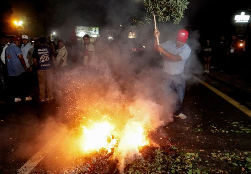 On Tuesday evening, around 500 LIBRE supporters protested outside offices in Tegucigalpa where election ballots are being stored and some set car tires alight, according to a Reuters witness.