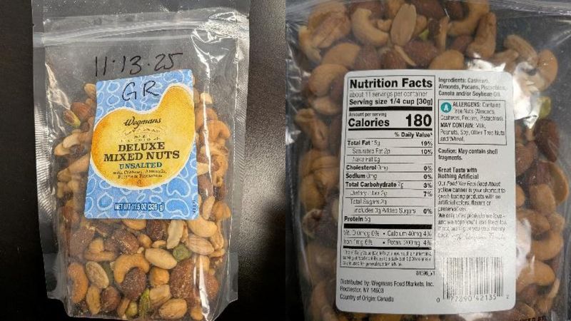 Mellace Family Brands California, Inc., based in northeastern Ohio, recalled packages of unsalted Wegmans Deluxe Mixed Nuts on Dec. 5, according to the FDA notice.
