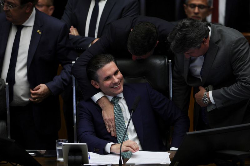 President of the Chamber of Deputies Hugo Motta attends a session at the plenary of the Chamber of Deputies in Brasilia, Brazil December 9, 2025. REUTERS/Adriano Machado