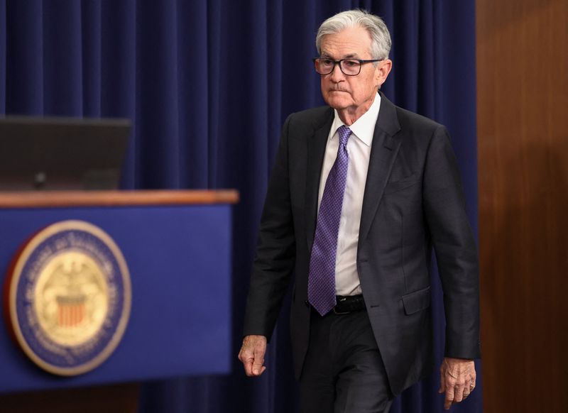 U.S. Federal Reserve Chair Jerome Powell walks as he attends to hold a press conference following a two-day meeting of the Federal Open Market Committee (FOMC), at the U.S. Federal Reserve in Washington, D.C., U.S., December 10, 2025. REUTERS/Kevin Lamarque