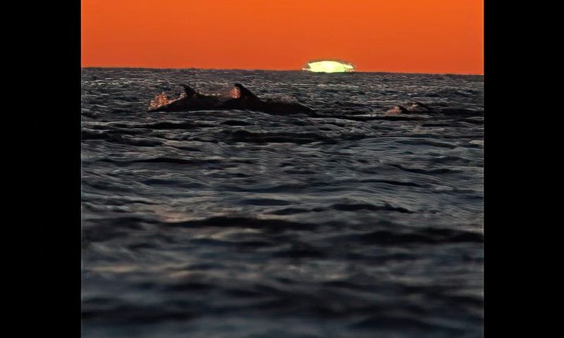 If you spend time enough on or near the ocean, you’re likely to see an occasional green flash. But you’d have to be extra fortunate to witness the phenomenon with dolphins in the foreground.