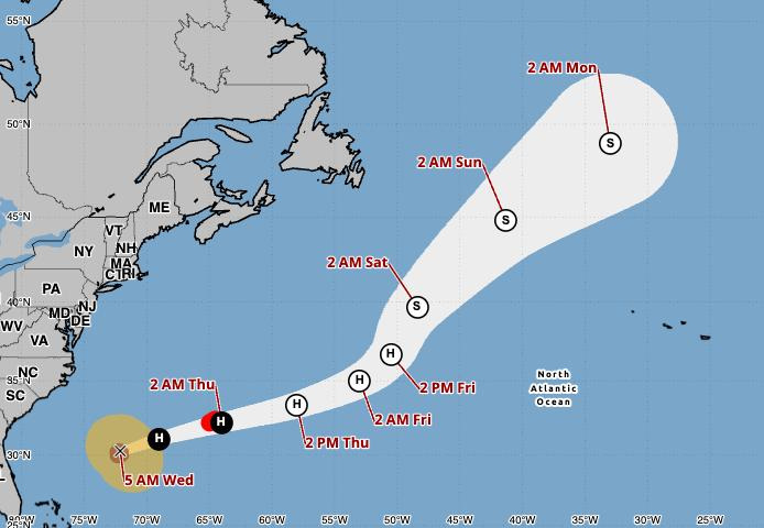 According to an 11 a.m. ET advisory on Wednesday, Oct. 1 from the NHC, the hurricane is located about 340 miles west-southwest of Bermuda.