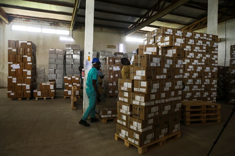 Workers unload packets of Artesunate drug in a warehouse in Maroua, Cameroon September 2, 2025. REUTERS/Desire Danga Essigue